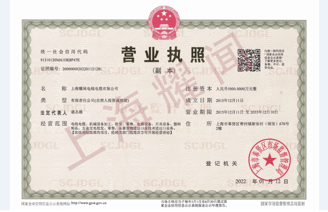 上海耀聞電線電纜有限公司成立于2015年,注冊(cè)資本5000萬(wàn)元人民幣。是一家專注于電線電纜的研發(fā)、生產(chǎn)及銷售的高新技術(shù)企業(yè)。
